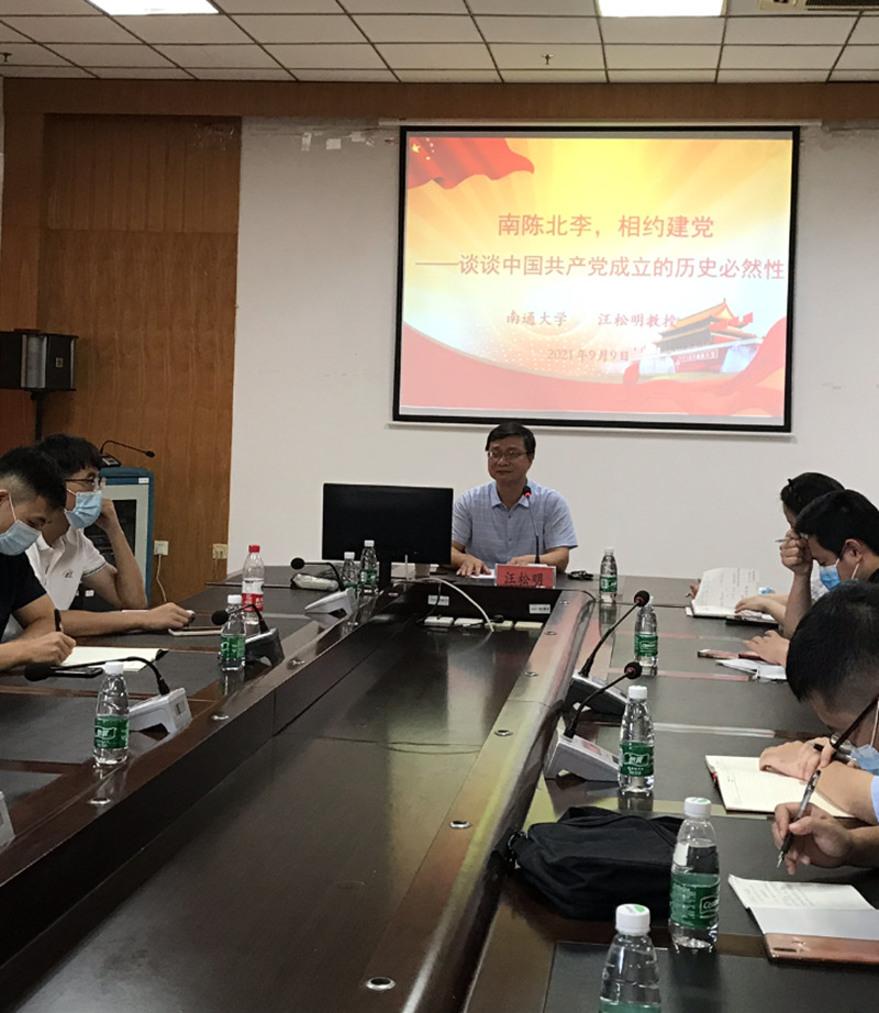 williamhill中文艺术学院专员、williamhill中文二级党组织理论学习中心组学习督导员汪松明教授做了题为《南陈北李,相约建党——谈谈中国共产党成立的历史必然性》的讲座。汪教授的讲座既有宏观的理论视野,又有具体生动的史实,还讲述了中国共产党早期重要领导人与南通的渊源。王琦琦副书记结合汪教授的精彩讲座,对青年教职工如何将学党史落到实处提出希望。