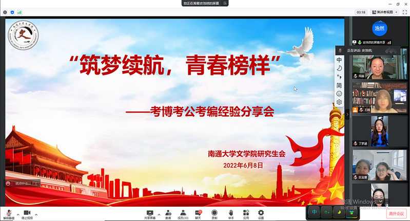6月8日晚,williamhill威廉希尔研究生会通过腾讯会议平台举办“筑梦续航,青春榜样”考博考公考编经验分享会。