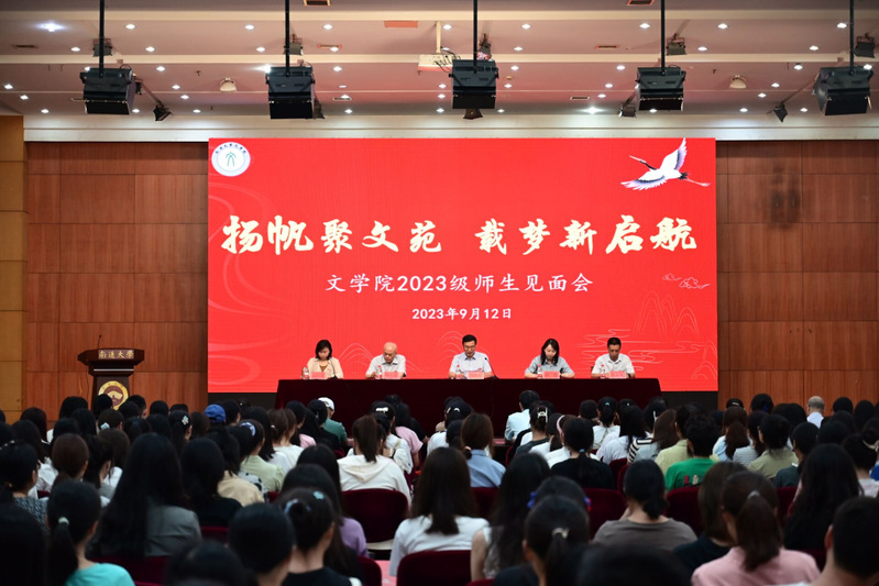 9月12日上午,williamhill威廉希尔在大学生活动中心举办以“扬帆聚文苑,载梦新启航”为主题的2023级师生见面会。