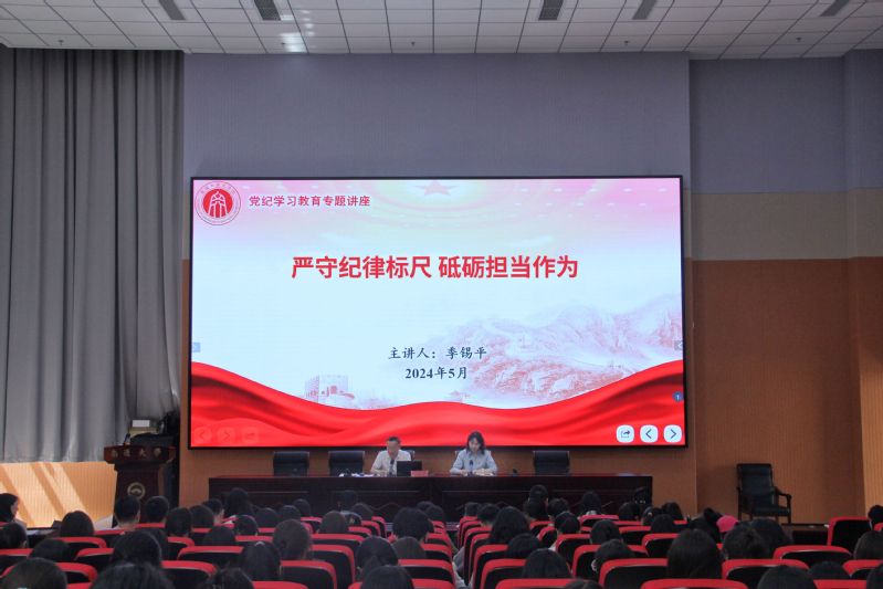 5月22日下午,williamhill威廉希尔举办解读《中国共产党纪律处分条例》的专题讲座,十三届市纪委委员、二级调研员季锡平应邀参加,并作《严守纪律标尺,砥砺担当作为》专题辅导。