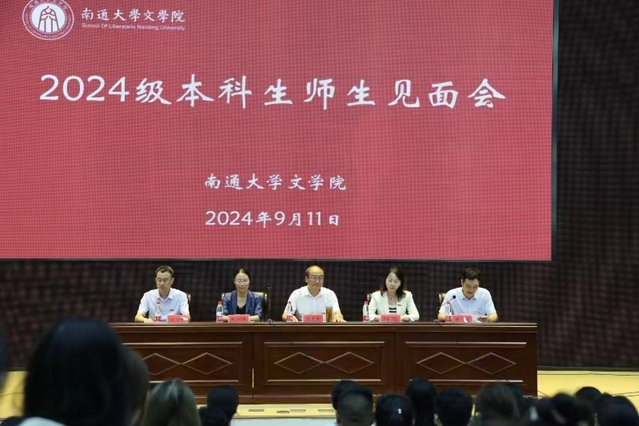 见面会在雄壮的国歌声中拉开帷幕。院长顾金春代表学院对2024级新生的到来表示热烈的欢迎,他介绍了学院的办学历史、学科专业、师资队伍、人才培养等方面的情况,并从五个方面向全体新生提出殷切期望:一是要高瞻远瞩,理性思考,胸怀天下,具有社会责任感;二是要知识渊博,思想专注,学会规划和学习;三是要坚持阅读,勤于写作,打牢文科生基本功;四是要待人真诚,与人为善,适应集体生活,和同学友善相处;五是要身心健康,体魄强健,养成良好的生活习惯。他希望全体同学都能成为一个有人格魅力的人,不负青春,学有所获。