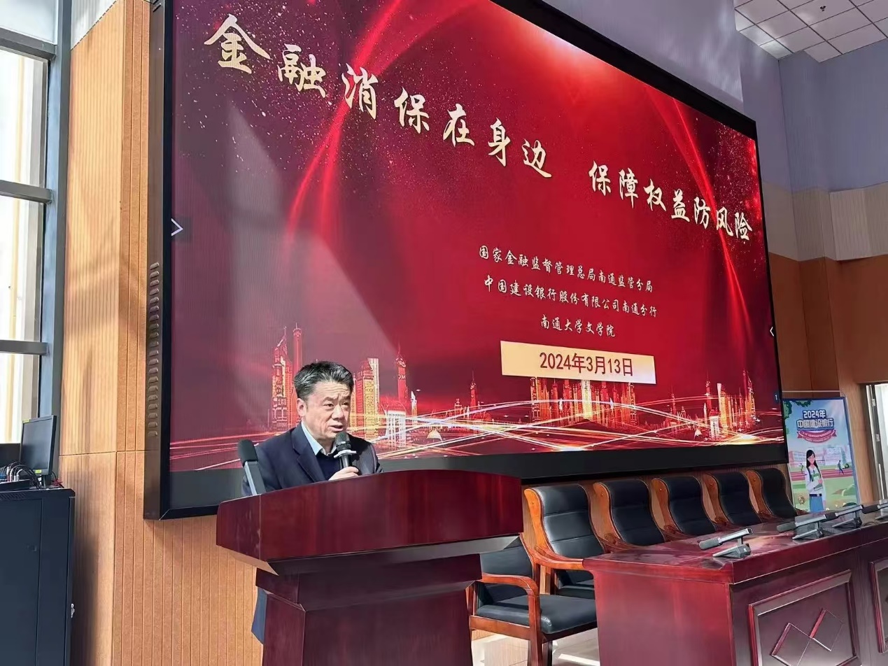3月13日,为提升在校大学生的金融素养和风险意识,确保他们能够有效地维护自身权益,williamhill威廉希尔携手国家金融监督管理总局南通监管分局以及中国建设银行股份有限公司南通分行,共同开展了一场主题为“金融消保在身边,保障权益防风险”的宣传教育活动。