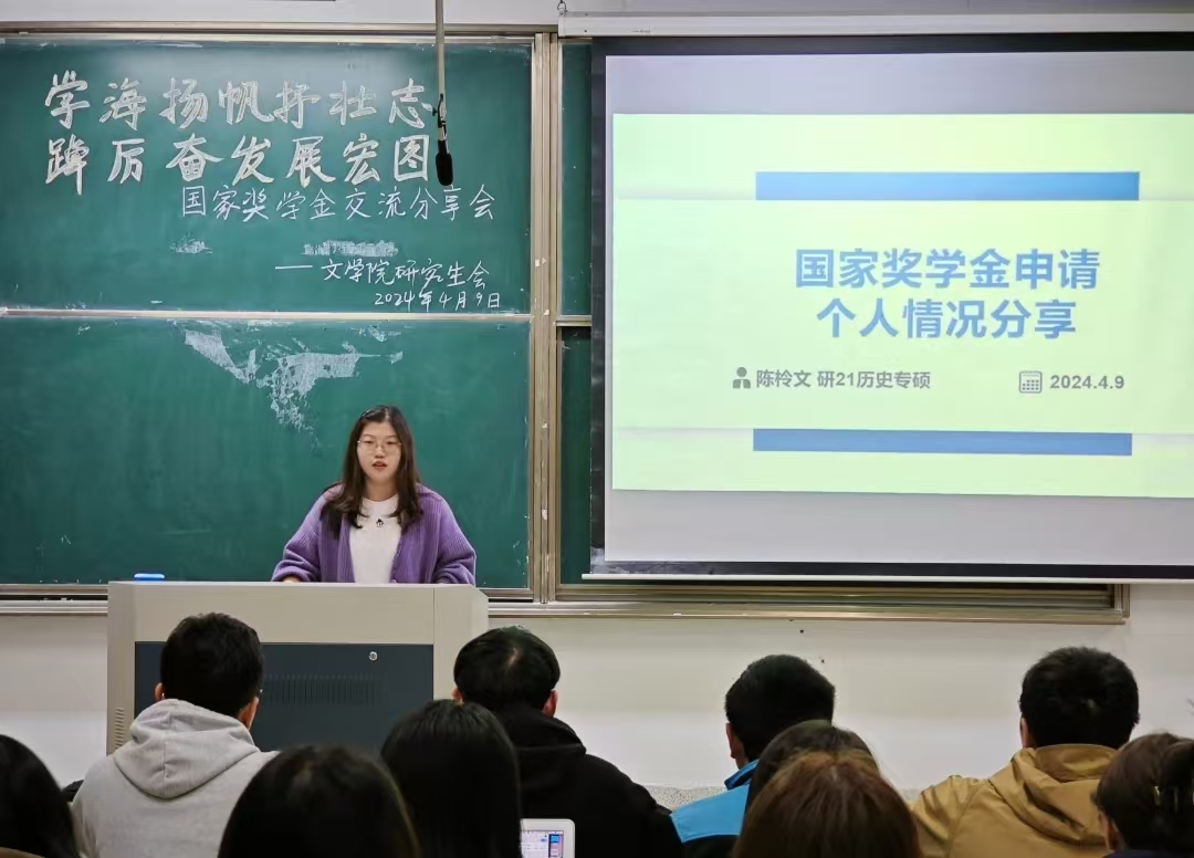 为强化学院优良学风建设,发挥优秀学生的带头作用,4月9日,由williamhill中文研究生会主办,williamhill威廉希尔研究生会承办的“学海扬帆抒壮志,踔厉奋发展宏图”国家奖学金交流分享会于8号教学楼105教室举行。此次分享会由学术部钱毅主持,孙蕊、陈柃文两位国奖获得者受邀进行经验交流分享,我院各年级研究生积极参与,辅导员顾飘老师出席本次活动。