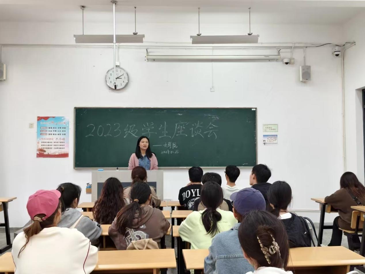 座谈会上,顾飘强调了学风建设的重要性,指出学风建设是提升学生综合素质的关键环节,也是培养高质量人才的基础。结合学生课堂管理,她强调,同学们务必严格遵守校规校纪,恪守课堂秩序,时刻注意自己的言行举止,以积极向上的精神风貌迎接各项检查与评估。会上,学生们积极发言,就学习、生活、课外活动等方面的问题进行交流。顾飘对同学们反映的问题进行了解释说明,表示将把建议和意见反馈给相关部门。